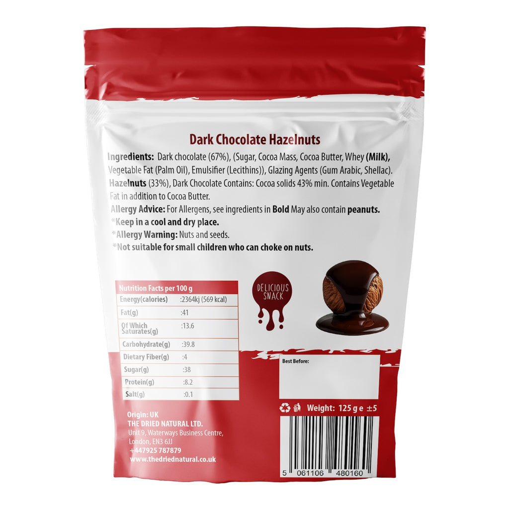 Our Dark Chocolate Coated Hazelnuts bring together the perfect pairing of roasted whole hazelnuts and a thick, luxurious layer of dark chocolate. The deep cocoa flavour complements the natural crunch of the nuts for a premium snack that’s both indulgent and satisfying. Whether you're after dark chocolate snacks, chocolate nuts in bulk, or a gourmet gift filler, these treats deliver.