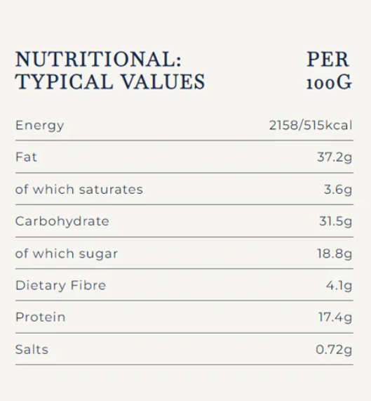 Peanuts (40%), Cashew Nuts (40%), Sugar, Sunflower oil, Glucose syrup, Honey, Sea Salt, Heather Honey(1%).